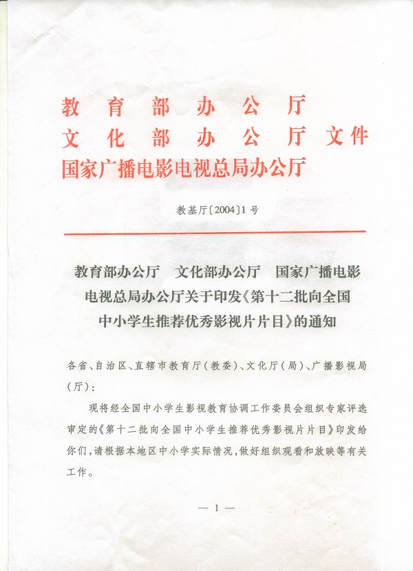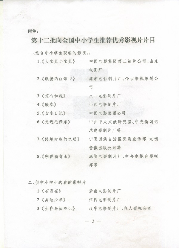 向全国中小学生推荐优秀影片片目