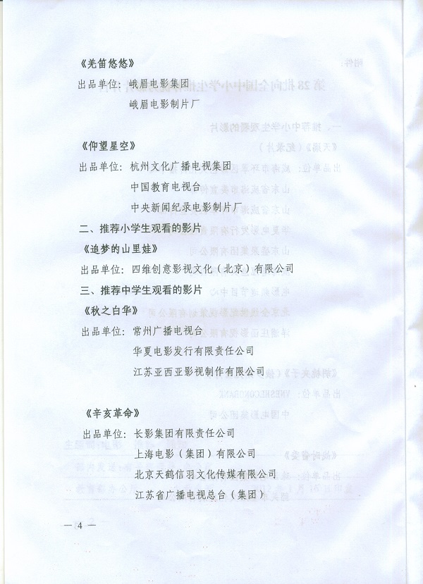 向全国中小学生推荐优秀影片片目