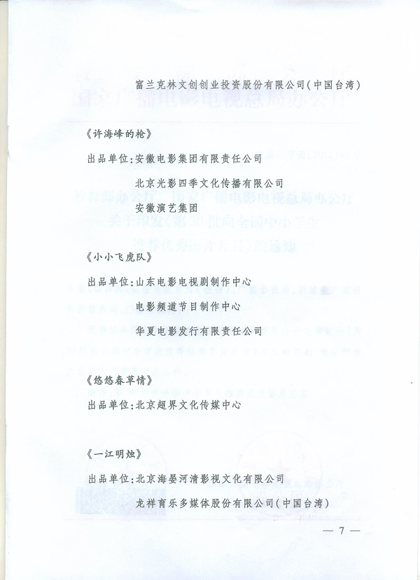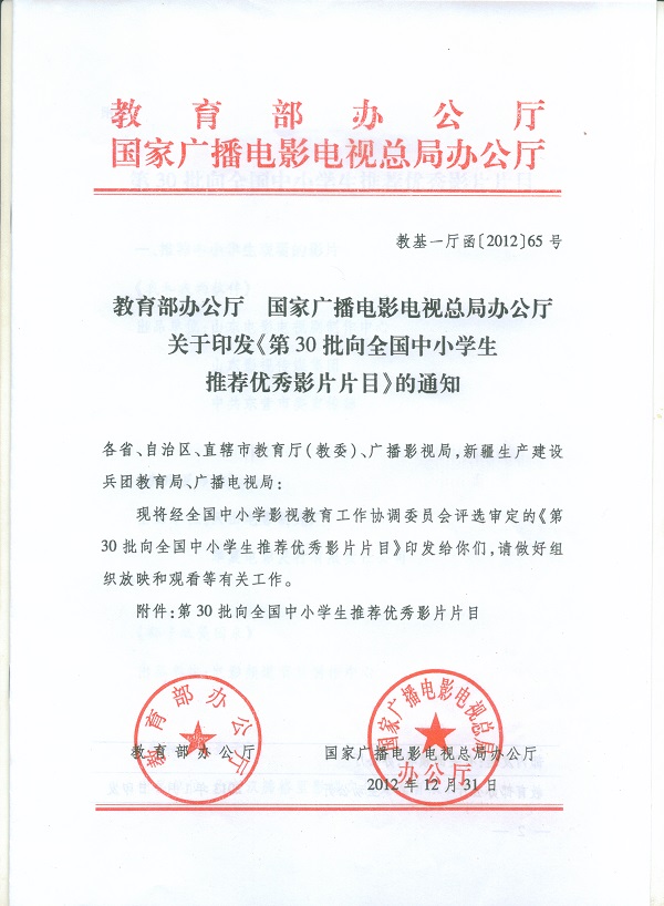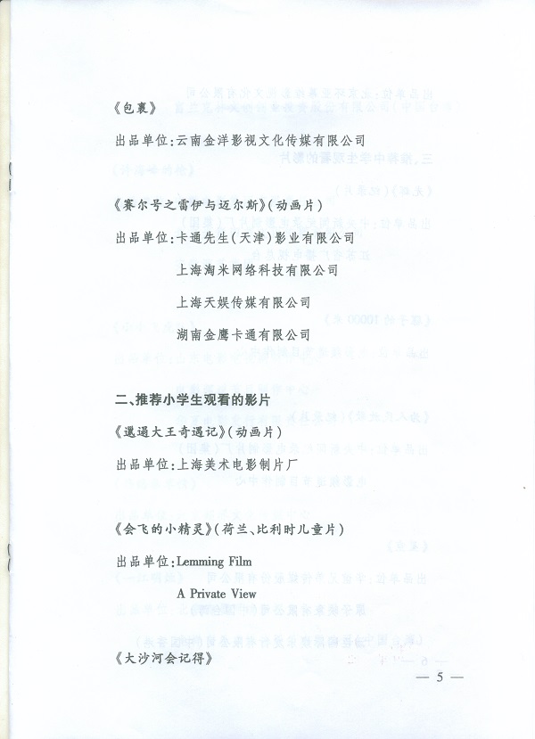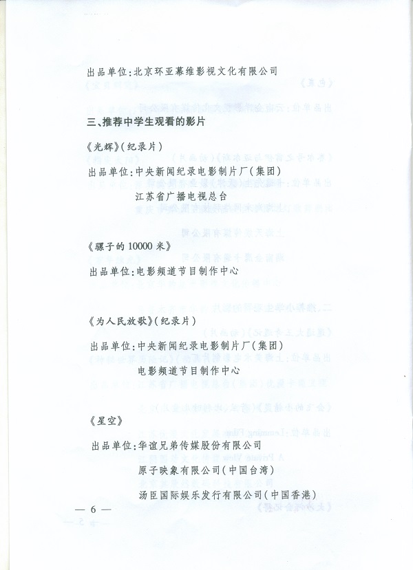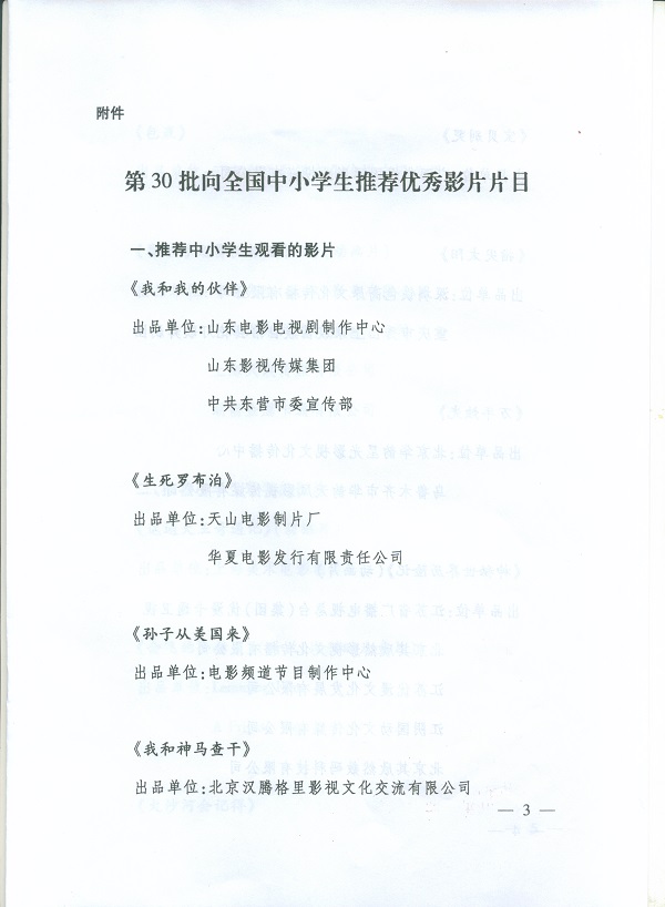 向全国中小学生推荐优秀影片片目