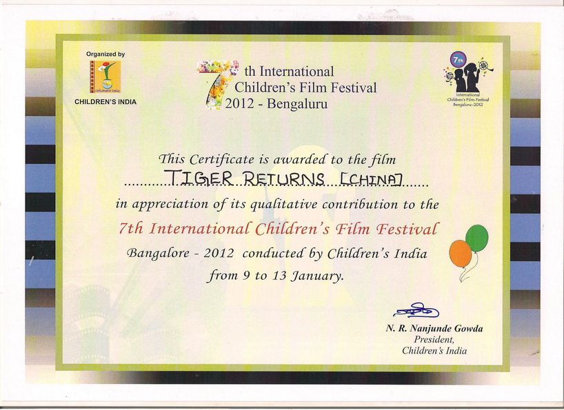 在2012年1月9日至14日举行的第7届印度班加罗尔国际儿童电影节上,由中国儿童少年电影学会推荐的《虎王归来》、《孩子那些事儿》、《特别的爱》、《爱无疆》和《小人国》等七部影片,分别在剧情片,动画片和纪录片单元进行了放映。