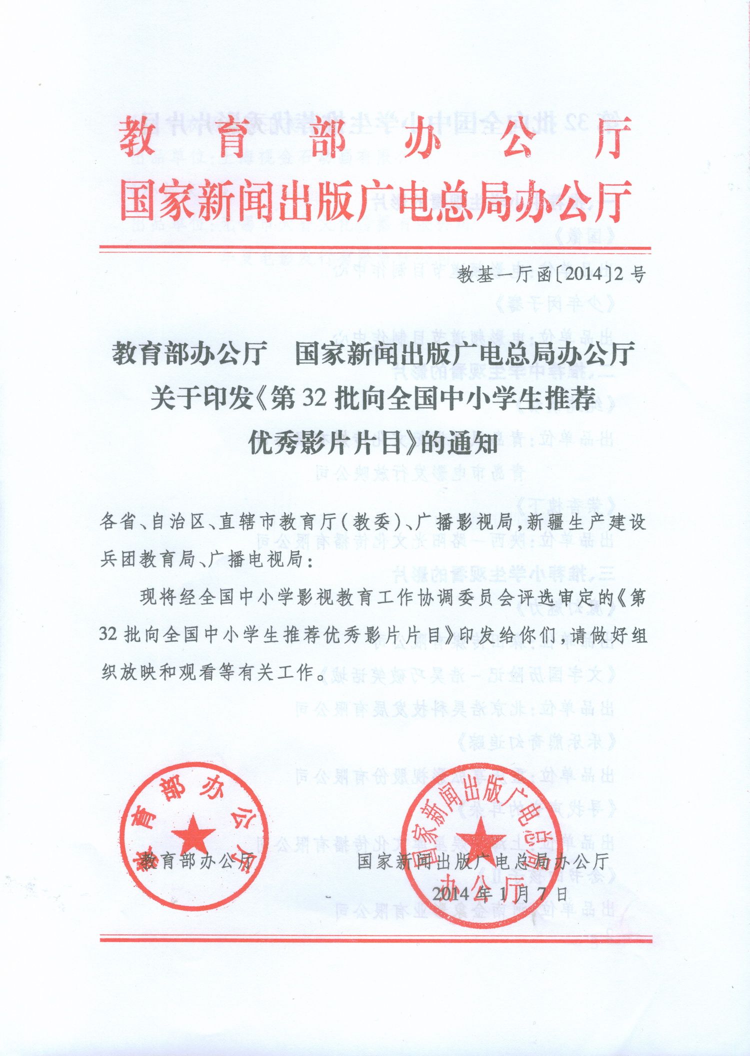 向全国中小学生推荐优秀影片片目