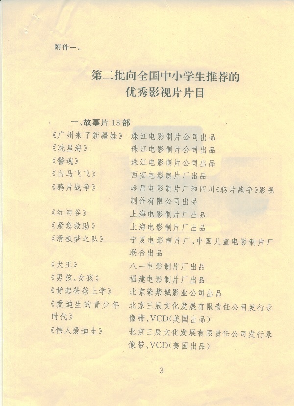向全国中小学生推荐优秀影片片目