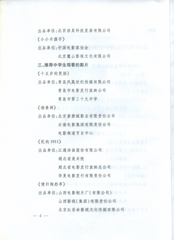向全国中小学生推荐优秀影片片目