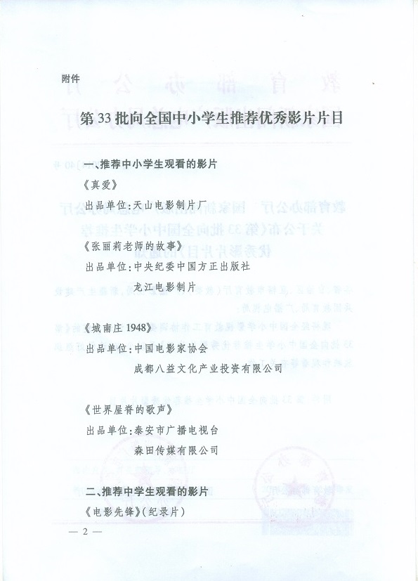 向全国中小学生推荐优秀影片片目